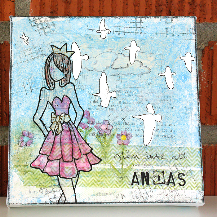 Idag visar jag en liten canvas på 15*15 cm där jag använt mig av den vackra stämpeln Stella.